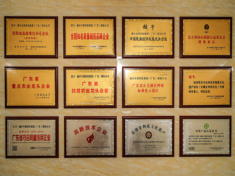 橘乡集团经过9年的经营与发展,现有正毛化橘红种苗繁育基地150多亩,正毛化橘红种植基地3701亩,年产橘红湿果约2000吨,加工成橘红干果为400吨,年产值2.8亿余元,年销售额1.8亿多元,利润约3600万元。